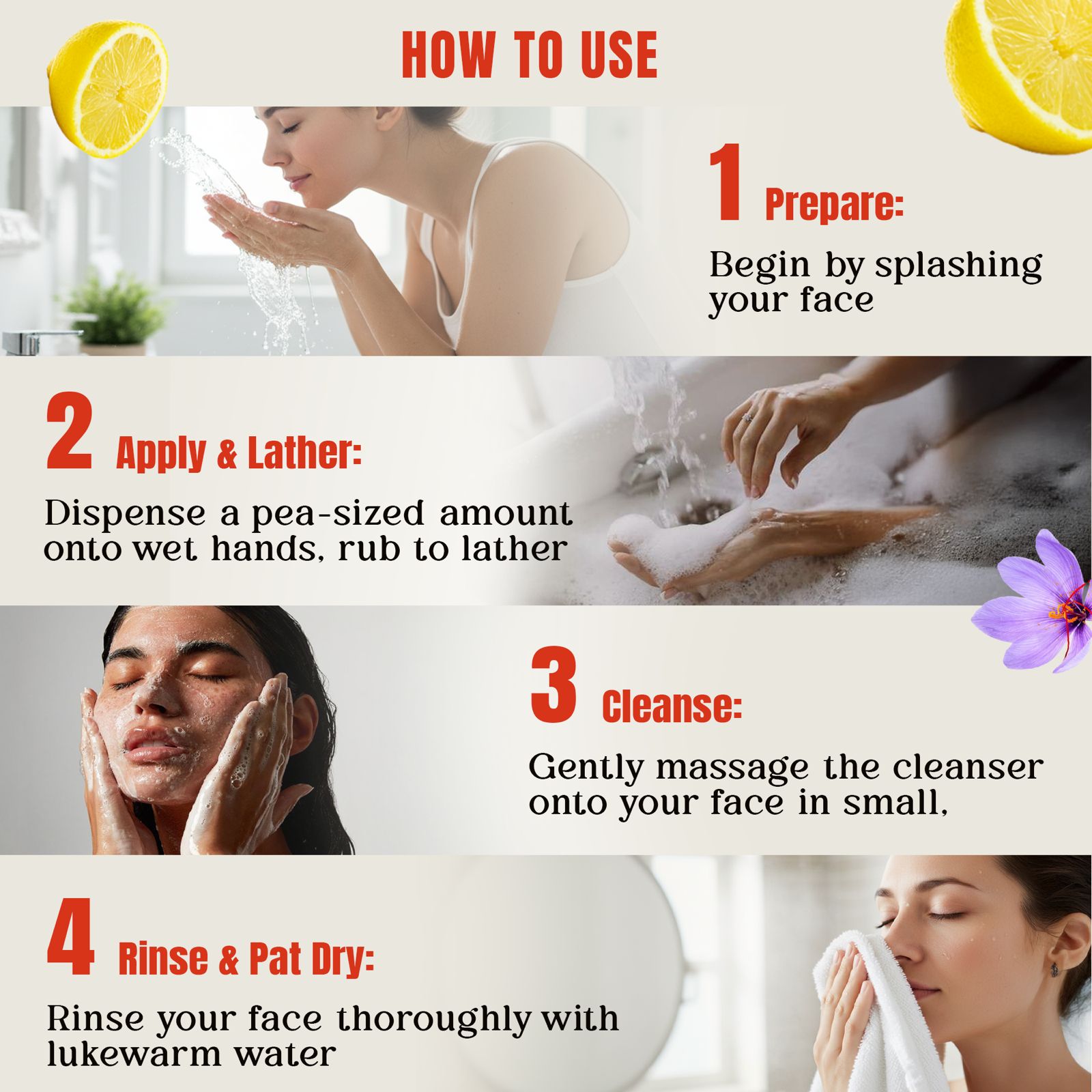 Apply on a damp face and gently massage in circular motions.